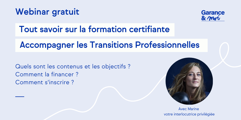 Bienvenue dans notre Webinar, animé par notre fondatrice Garance Yverneau. L'objectif de cet évènement est simple : parcourir en 1 heure tout ce que vous devez savoir sur la formation certifiante "Accompagner les transitions professionnelles" pour vous lancer sereinement !