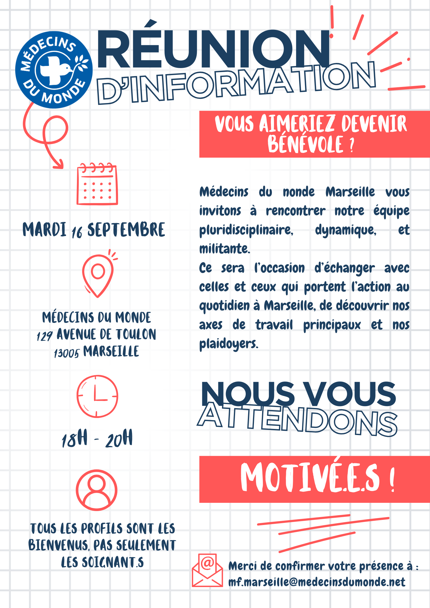 Médecins du Monde à Marseillevous attend pour accueillir et accompagner notre public précaire et étranger en toute bienveillance !